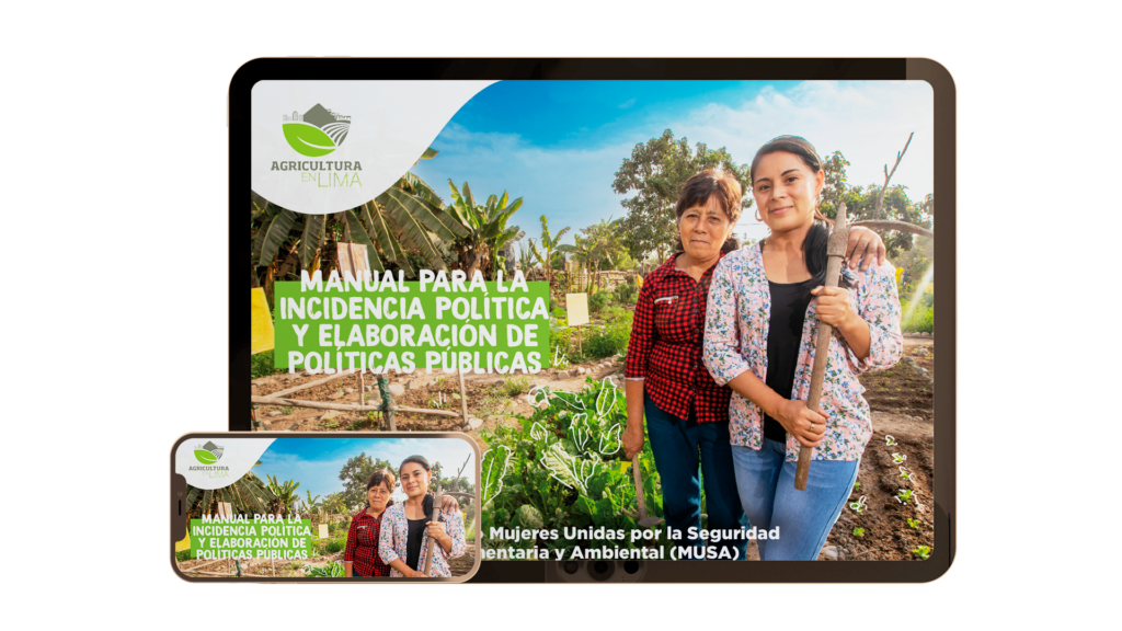 A través del proyecto “Mujeres Unidas por la Seguridad Alimentaria y Ambiental” (MUSA), implementado por la Plataforma de Agricultura Urbana en Lima (PAUL), MOCICC desarrolla este manual que busca vincular a las agricultoras urbanas con las redes de mujeres que forman parte de las ollas comunes, a fin de intercambiar sus conocimientos y poder enfrentar la crisis alimentaria fortaleciendo sus capacidades en la toma de decisiones y poder emprender acciones necesarias en incidencia política de promoción de la agricultura urbana y todos los elementos que forman parte de ella, elaborando proyectos de ordenanza, convenios y programas así como acciones en los espacios de participación ciudadana en la gestión municipal en los distritos de Lima Metropolitana y la Región del Callao.